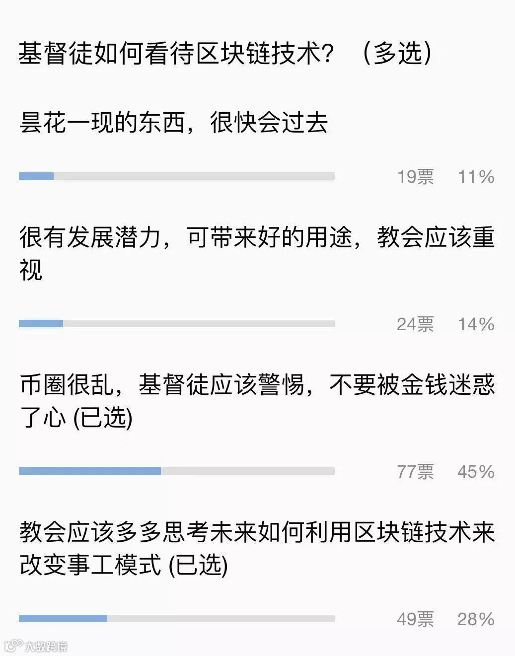 最近,区块链频上热搜。然而,大众对之知之甚少,基督徒更是敬而远之。今日佳音近期推出的《借钱不还?或许区块链可以帮你解决》一文,我们进行了读者调查“基督徒如何看待区块链技术”。截止发稿时,有近一半(45%)的读者认为“币圈很乱,基督徒应该警惕……”。这从某种层面反映出大家对区块链技术的陌生。实际上,区块链是一种技术,而比特币是基于这一技术衍生的数字货币。