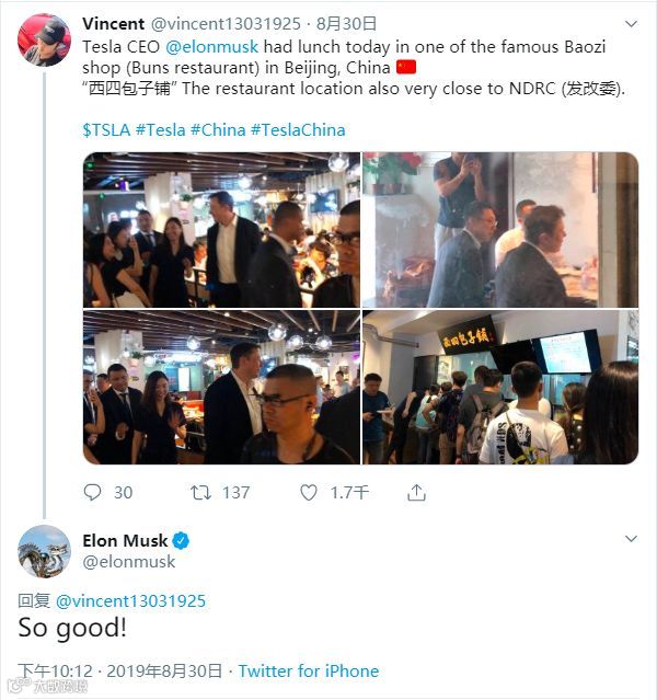 8月底,马斯克来到中国,表达了一番惊叹,吃了那顿包子。