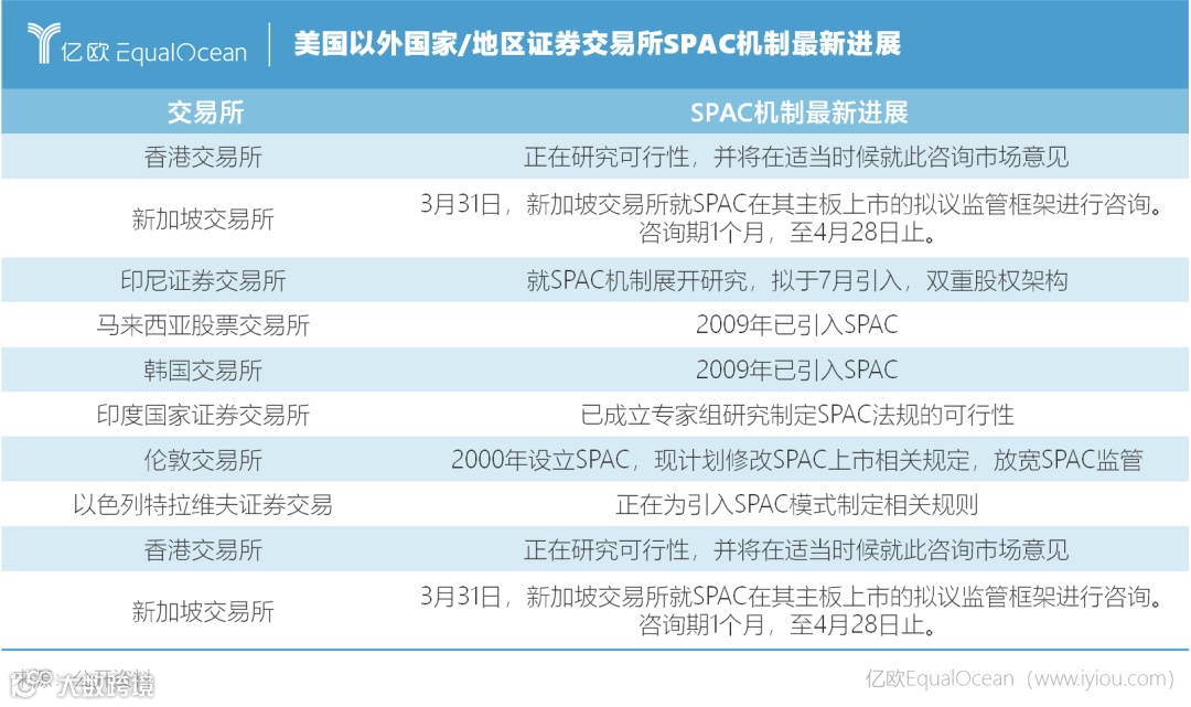 与此同时,为了防止本国优质企业外流,同时加强自身吸引力,全球多家证券交易所也开始研究探讨或已经引入SPAC上市机制。