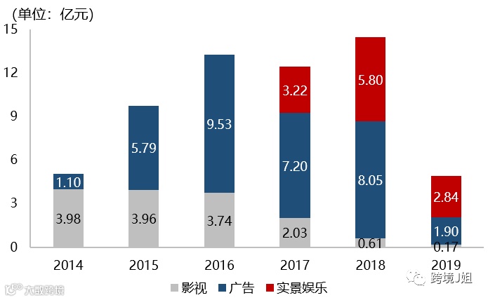 2015年,长城影视出资3.35亿收购诸暨影视城,计划发展“实景娱乐”业务,此后又高溢价收购9家旅行社,想借此为影视城输送更多游客。此外也收购了大量广告公司。随着收购的展开,广告和实景娱乐逐渐成为长城影视的主要收入来源,影视业务收入则逐年下降。