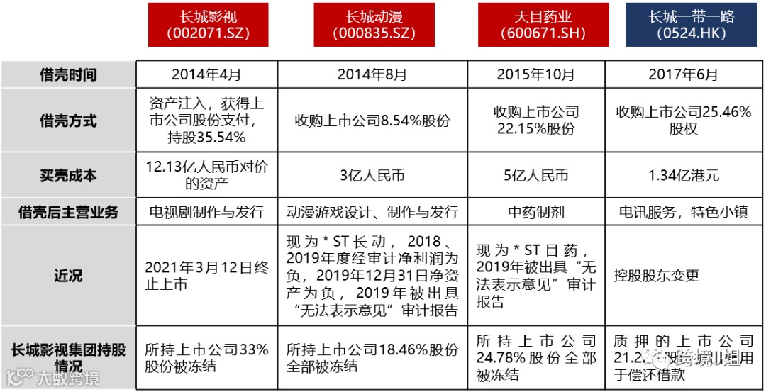 曾经打造“影视借壳第一股”,通过借壳方式布局3家A股上市公司1家港股上市公司,风光无限的“资本大佬”,最终却落得债台高筑,官司缠身,旗下上市公司1家退市,1家丢壳,2家*ST的局面,让人叹息。究其原因:大举高溢价收购,股权质押借款扩张。是看似借壳玩得溜,但其实未能真正用好借壳。借壳是一种资本手段,最终目的是为实业发展提供支撑。若是定位不清,一味追求规模,偏离主业,恐怕只会日趋失控,与借壳初衷渐行渐远…