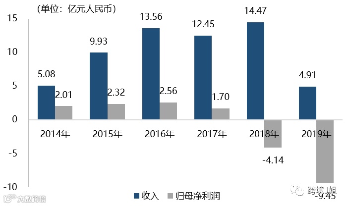 大规模收购初期,规模的扩充对长城影视业绩曾起过有力提振作用,2014至2016年两年间,营收翻番,从5亿增至13.6亿人民币。然而,净利润却仅实现5,000万人民币的增长。2016年后,净利润一路下滑,2018与2019年则分别亏损4亿与9.5亿人民币。