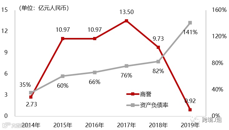 4年间近30亿人民币的收购,钱从哪来?靠借!从上图中长城影视资产负债率走势可以看出,自借壳上市后,长城影视资产负债率一路走高,到2019年已高达141%。长城影视通过质押子公司股权、应收账款、房屋和土地使用权等方式取得借款。也就是,用现有子公司的股权质押出去借来的钱,再去买新的子公司。