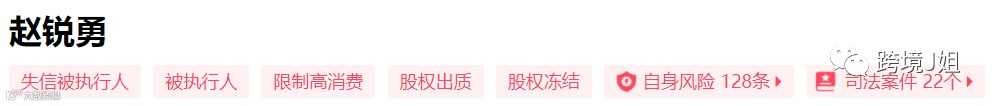 目前的赵锐勇已别列为失信被执行人,限制高消费,涉及多起司法案件。