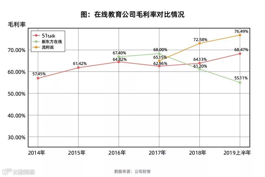 对于英语培训来说,人工成本是很大的一部分,像51Talk、新东方在线等毛利率在60-70%之间。