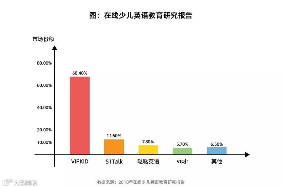 线上青少儿英语最大的品牌是VIPKID,市场份额占比达到68.4%。但是VIPKID并不赚钱,根据美国付费科技媒体The Information在今年4月公布的数据显示,2018年前十个月,VIPKID收入增长到30亿元,但净亏损达到了22亿元。最主要的原因仍然是营销成本太高。