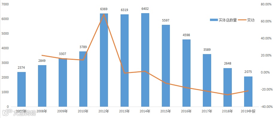 2007年以来达芙妮实体店数量