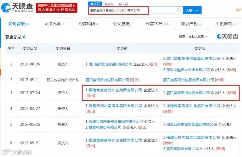 据天眼查,富贵鸟于2015年成为富银金融投资人,于2017年退出。