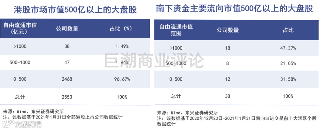 南下资金主要流向市值在500亿以上的大盘股