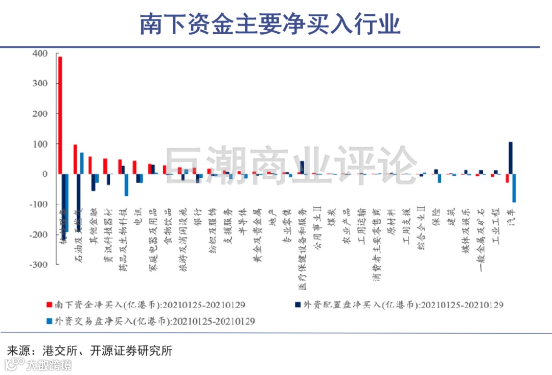 上周南下资金主要净买入软件服务、石油及天然气、其他金融、资讯科技器材及电讯等行业