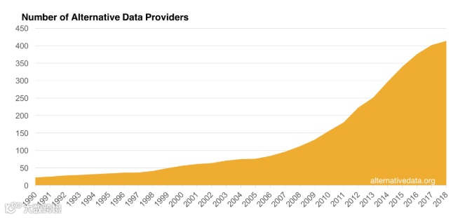 近年来,另类数据逐渐走进了二级市场投资的视线。随着使用常规数据 —— 量价、财务等 —— 构建交易信号、进行交易变得越来越拥挤,所获得的超额收益越来越被稀释,人们把目光投入到了另类数据上,希望通过独门数据源获取别人不知道的 α。另类数据也在借着这个风口获得了巨大的发展。来自 AlternativeData.org 的数据显示,在最近几年,另类数据 providers 的数量也出现了激增。