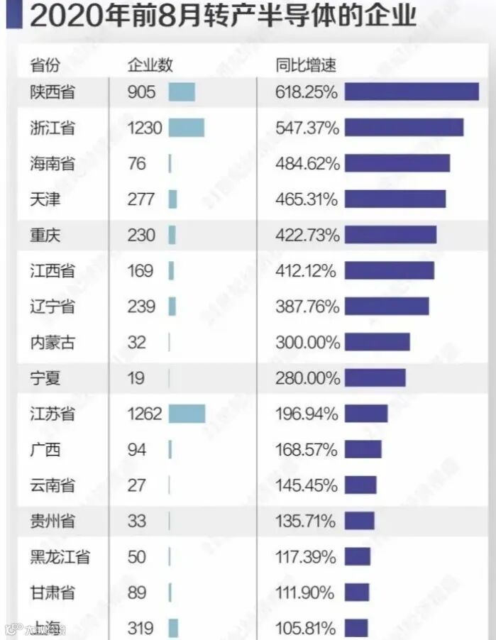 2020年前八个月,中国有超过一万家企业转投芯片行业。