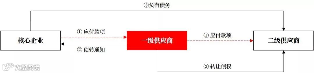 供应商有支付需求时, 可将持有的应收账款及凭证全部或部分转让予其上游供应商用于清偿贸易服务款;