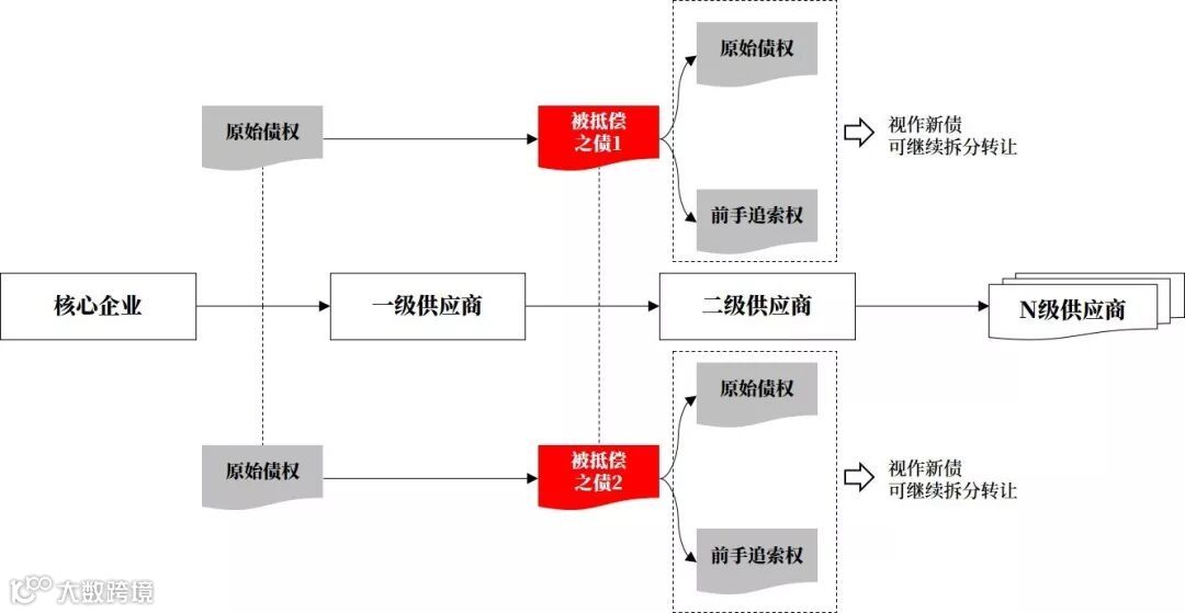 债权拆分转让的意义在于实现持有债权与应付债务金额上的匹配。而以债权转让方式清偿债务的意义则在于将核心企业的信用基于上游供应商间的贸易关系沿供应链不断流转, 实现核心企业的信用灌溉。