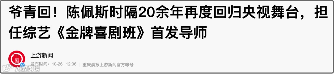 昨天,不少媒体从央视得到消息,确认“小品大王”陈佩斯时隔20余年后,再度回归央视舞台,担任综艺《金牌喜剧班》的首发导师。