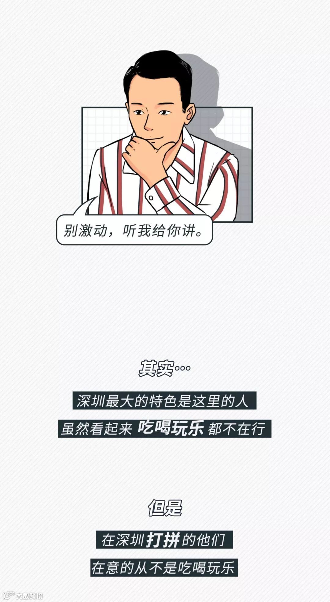 但深圳也有它特别的地方,它承认你的努力,不管付出时间、智力、情商还是人脉,都会被赋予回报;它也允许你与众不同,所以你会看到满大街都是年轻人,夜晚的东门美食街人头攒动,出站就能看见海的深圳湾公园总有人在漫步散心,深圳北站、宝安机场,永远有人奔赴而来,也有人乘兴而去。