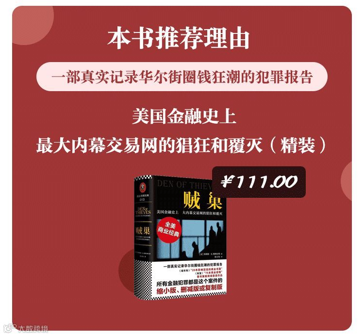 这本书也是热门美剧《亿万》的故事原型之一。很多看过美剧《亿万》的观众会觉得,行事充满政治色彩、手段无所不用其极的监管者,跟不择手段来获取竞争优势的交易员之间,似乎善恶的边界也在消融。的确,金融领域的犯罪也许不像民事领域的犯罪行为那么黑白分明,就拿《贼巢》的主角杠杆收购大王米尔肯来说,到底是内部人的利益输送侵占了更多的中小股东利益,还是外部的野蛮人收购损害了更多的中小股东利益,站在不同的角度可能就会有着不同的看法,这种争议也延伸到了中国版本的门口野蛮人“宝万之争”中。无论如何,这几本精彩的书都能让我们对于华尔街的另一面有着更深入的理解,别忘了,除了高端专业的金融交易,华尔街也有骗子、小偷和大白鲨。