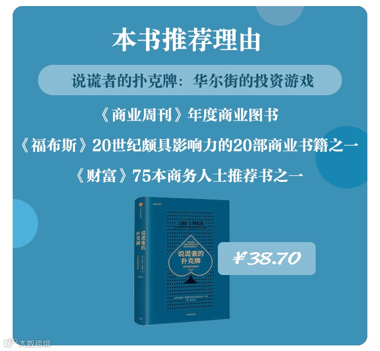 刘易斯在所罗门兄弟公司干了四年,这四年中他正好赶上了抵押贷款证券化产品和垃圾债券兴起的黄金时代,他从一个证券市场的门外汉成长为一个为公司赚了上千万美元的明星交易员,但在内心中,刘易斯从来没有真正接受过那种有些粗鲁蛮横的投行企业文化。在从所罗门兄弟公司离职后,刘易斯把自己的投行经历写成了这本《说谎者的扑克牌》,一问世就被认为是描写上世纪80年代华尔街文化的经典之作,刘易斯也再次转型成为一名商业畅销书作家。