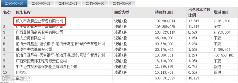 韶关高腾是辽宁成大第一大股东,但持股比例仅为12.61%。这次韶关高腾质押股份748.5万股,占所持公司股份的3.88%,占公司总股本0.49%。质押期限为2020年9月23日至2022年9月15日。
