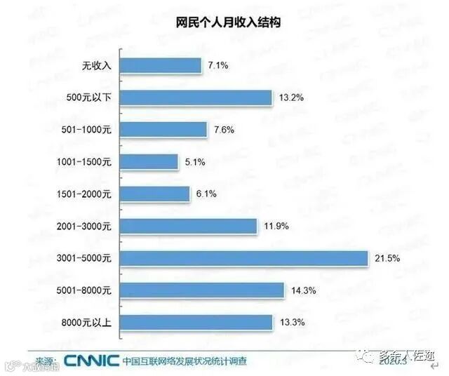 在数据发布后,让人吃惊意外的还有网民的收入情况。