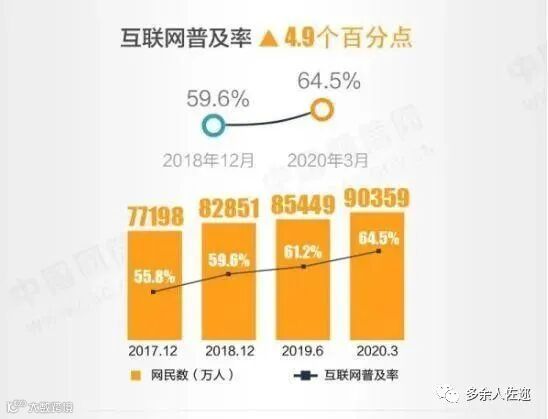 这份最新出炉的报告显示,截止2020年3月,中国网民规模达到了9.04亿,互联网普及率达64.5%。相比2019年,均有较大增长。