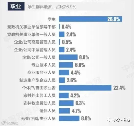 有大学专科及以上学历的网友仅占19.5%,这意味着,没上过大学的网友比例高达80.2%,还有17.2%的网民仅为小学及以下学历。这很不科学吧?其实这个数据非常、非常、非常科学……