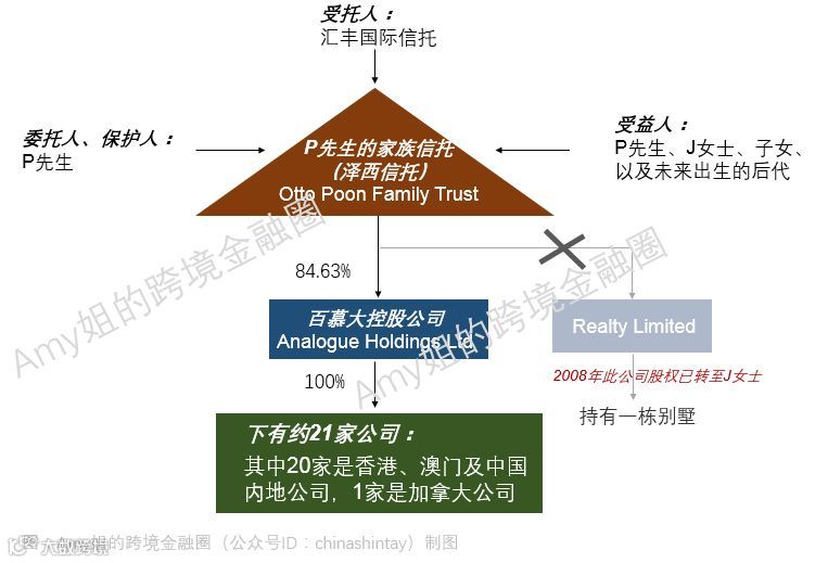 P先生作为信托的委托人和保护人监管着信托,同时作为百慕大控股集团的董事掌控运营公司的经营,