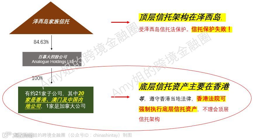 △图:顶层泽西信托—中间百慕大控股公司—底层香港资产等(Amy姐的跨境金融圈制图)