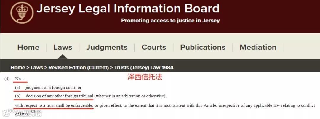 △图:泽西信托法第9(4)条的规定,任何外国法庭的判决,都不得执行