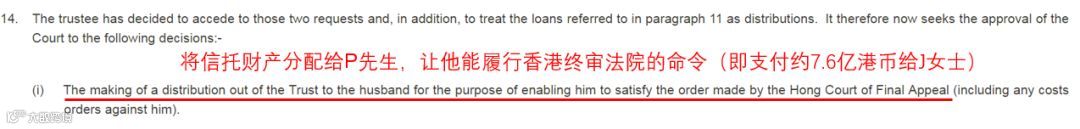 向泽西法院请求分配信托财产(7.6亿港元)给P先生,以使他履行香港法院命令。