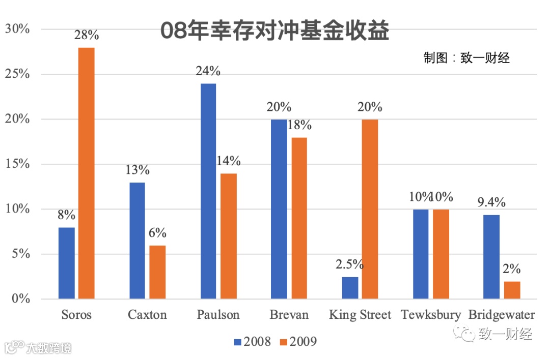 (08年“幸存”的几家正收益的基金,桥水并不是做的最好的,但也很不容易)