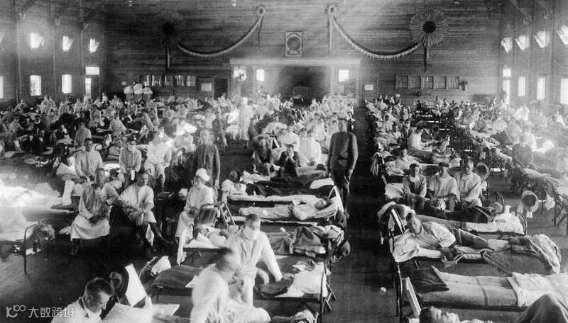1918年3月11日,这场夺命世纪大流感在美国堪萨斯州的芬斯顿军营爆发,通过战争流传到欧洲一战战场,随后席卷全球,感染了全球超过30%的人口,在那个抗生素还没有诞生的年代造成了5000万-1亿人死亡;
