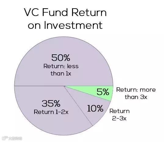 一位以色列知名的LP说:“95%的VC都不赚钱。”在 LP面临着风险、管理费支出和资金锁定的情况下,95%的VC基金实际上不能给LP带来足够的回报。一只VC基金只有得到3倍的回报才能达到“风险回报率”的及格线,只有5%的VC基金做到了,其余95%正处于在收支平衡和完全亏损之间的某个点(别忘了还有通胀),其中10%的基金回报在2-3倍,35%的基金回报在1-2倍,高达50%的基金回报低于1倍。