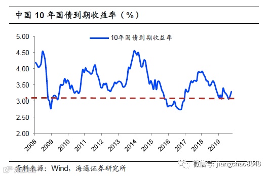 而债券的收益取决于利率走势。虽然货币供应量上升之初,会带来资金充裕、利率下行,但是当地产、基建等投资大幅被刺激,又会使得对资金的需求增加,从而利率重新回升。所以从长期来看,18年末我国10年期国债收益率在3.2%左右,跟09年初的水平大致相当。也就是长期持有债券的回报,过去十年主要其实来自资本利得的再投资,债市整体上呈现牛熊交替,并未出现利率的持续趋势下行。