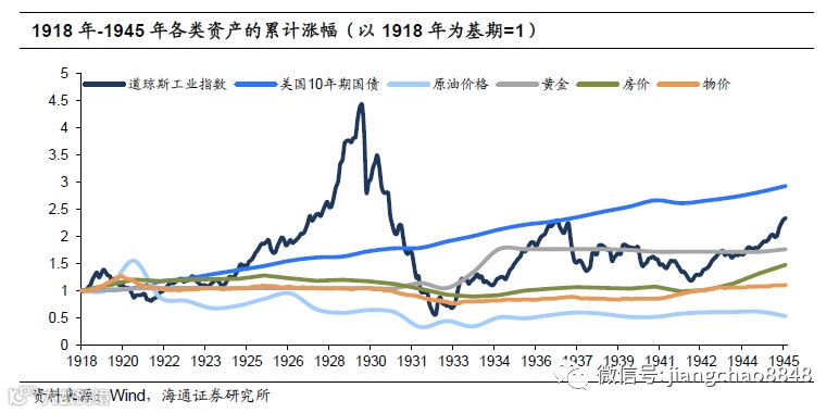 我们首先来看下1918年-1945年之间各类资产的表现。