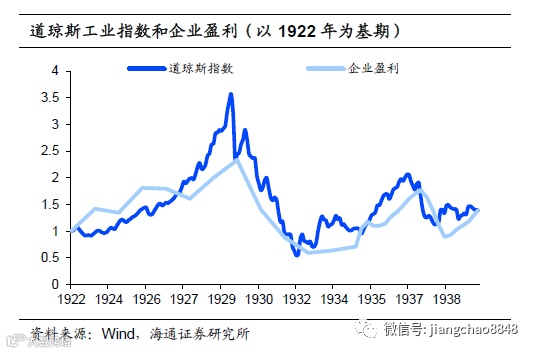 经济繁荣带来股市上涨,但随后投机引发股市泡沫。1910-1920年美国经济出现持续繁荣,上市公司企业盈利也不断攀升,带来美国股市的持续上涨。但是随着股市赚钱效应的日益显现,大量资金开始流入股市进行投机,股市泡沫化严重。在1929年9月股市崩盘之前,股市相对于1922年末已经累计上涨274.2%,而同时期企业盈利仅增长了124.9%,也就是说有超过120%的涨幅其实并没有盈利支撑。股市的泡沫化最终以暴跌收场,并对当时的美国经济造成严重冲击,引发大萧条。