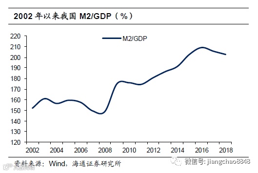 过去十年,房价的表现远远胜于股市,最关键的原因在于货币超发。08年之前,我国的M2增速和GDP名义增速基本匹配,M2与GDP之比也大致稳定在150%-160%的区间内,而09年以后,随着采取多轮举债刺激经济,货币持续超发,09-16年我国名义GDP增速平均为11%,而M2增速均值高达16%,16年M2/GDP上升到近210%。