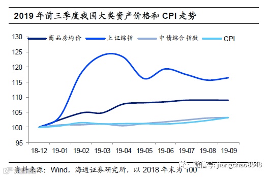 随着18年以来我国逐渐结束了货币超发,我国资产的表现与过去十年不同。19年以来,我国M2增速较过去十年的均值几乎减半,那么因货币超发而高涨的房地产价格也就增长乏力。今年1-3季度上证综指累计涨幅高达16.5%,商品房住宅销售均价涨幅9.0%,中债综合指数涨幅3.2%。如果以二手房价来看房地产的回报,今年1-3季度70城二手住宅价格累计涨幅仅3.3%,其中一线城市二手住宅价格仅上涨1.5%。房市与股市的表现与之前十年相比,明显逆转。