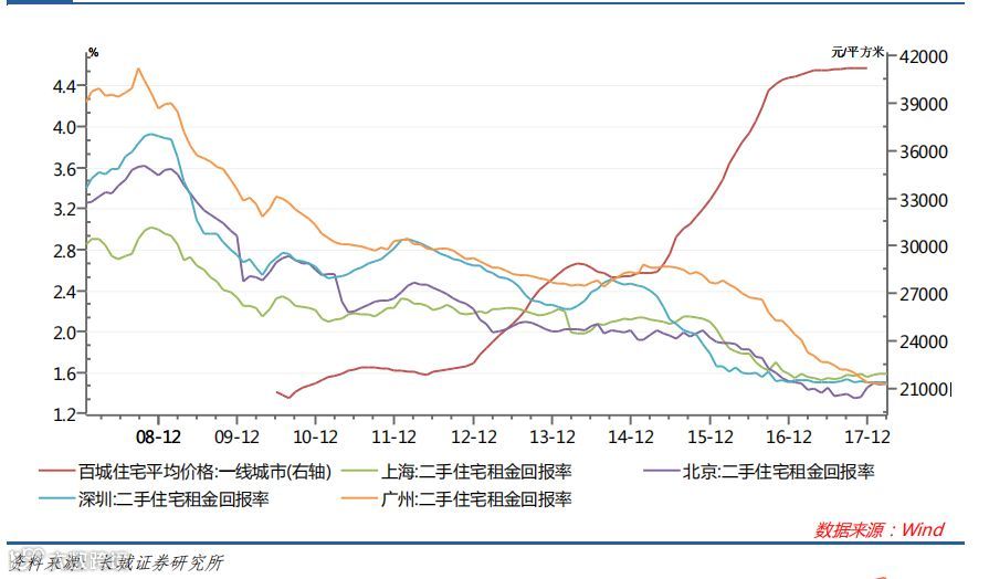 图:北上广深二手住宅租金回报率与新建住房价格
