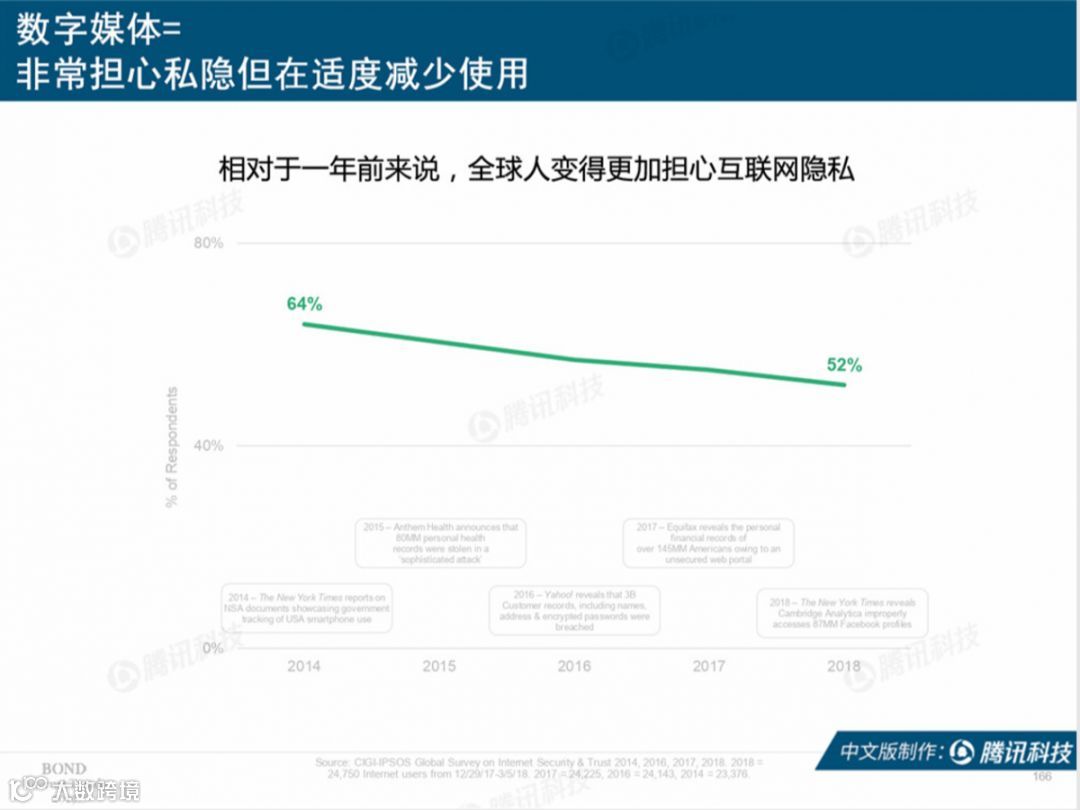 但是,很遗憾地讲,公众的隐私担忧加剧,很大一部分源于这几年互联网并没有新鲜事物诞生。大众产生审美疲劳时,就会把隐私这事儿拿出来说道了。