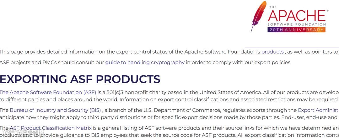 而 ASF 这次更新的文档,和 Github 内容大同小异: ASF 是个美国组织,需要遵守美国法律,也收到 EAR 影响。