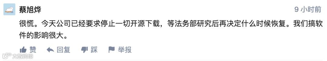 尽管如此,一些国内大企业已经受到影响了,有的程序员在知乎上表示公司已经停下工作开始观望,等自家法务部研究完了再动。