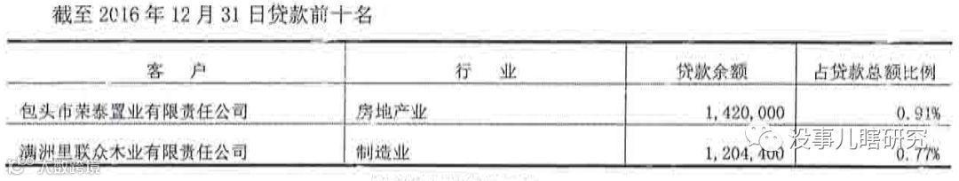 由于我们只能获得2016年的年报,因此我们以此为基础进行一下分析。我们先看一下包商银行的贷款集中度,贷款集中度是指贷款占该家银行资本净额的比重。贷款集中度风险,是银行对单一客户的贷款余额与银行净资本的比例过高而导致银行遭受贷款损失的风险。可以看到16年底的时候,包商银行的最大十家贷款占资本净额的比例在28%,接近30%。