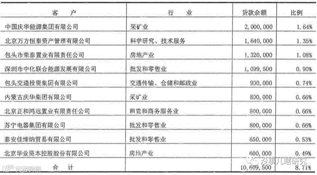 看到这里,相信大家都比较震惊吧,我很佩服包商银行敢于把前十大贷款人的名单公布出来,而不是像某些银行,代以客户一、客户二的名称。最近一期公告的年报里面前十大贷款人里面竟然一半被列入了失信人名单。而上一期的十大贷款人里面,有四个是失信人,有两家是自己人搞的子公司孙公司,有一家债券违约被ST。并且客户之间有着千丝万缕的关联联系。这是巧合吗?窃以为不太像是巧合,这只能说明包商银行的授信管理和信用管理做的实在是有点问题,可能不是一点儿问题,是很大的问题,或许还有点内幕在里面。