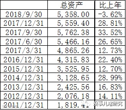 从包商银行公布的定期报告来看经营状况,总资产快速增长,2014年和2016年达到了29%和22%的增速,最夸张的是2017年3季度末比2016年底已经增长了34%,如果4季度继续下去的话,是不是能一年增长45%?简直太恐怖了。到17年3季度末的时候,总资产已经达到了5762亿。但部分媒体透露已独家获得大华会计师事务所的2017年包商银行审计报告,同时企业预警通app也有部分财务数据。综合来看,2017年末资产比3季度下降了近200亿,没有再持续之前的快速增长,18年3季度再下降了近200亿,来了一个大转弯。