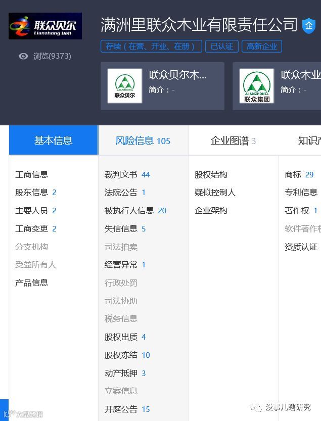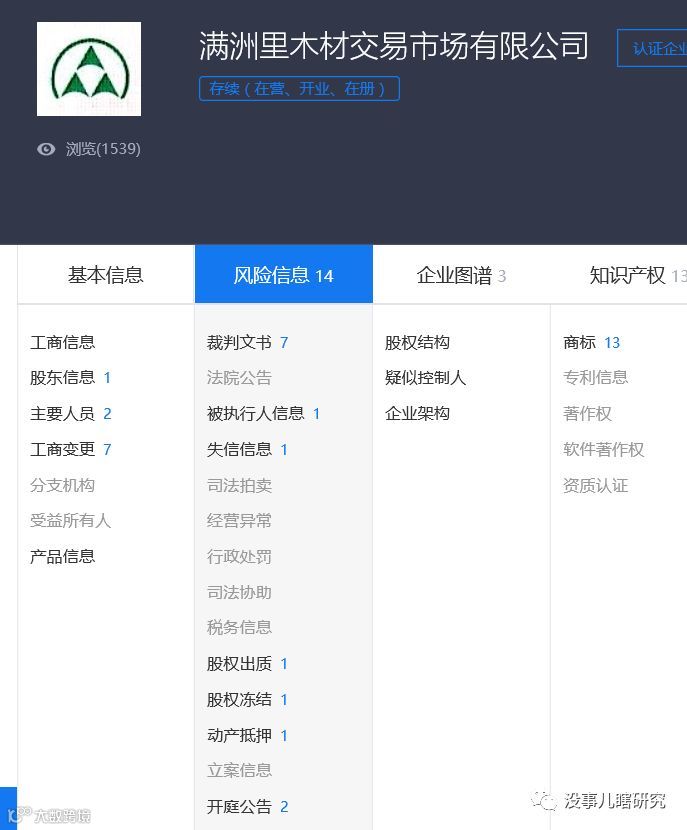 第四的深圳朗信天下金属供应链管理有限公司,总算是没有风险信息了。但是第五的满洲里木材交易市场有限公司,我就再次呵呵了。