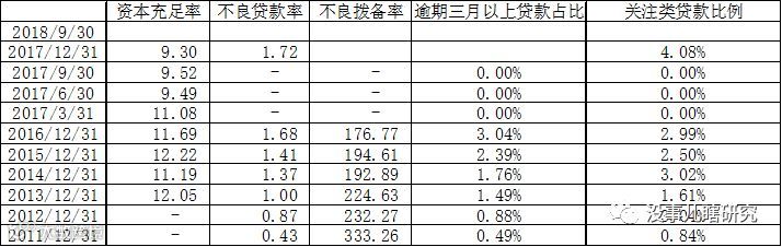 不良贷款率逐年上升,到17年末未1.72%,但是比起城商行的平均水平来不算高。但这不能充分反映贷款的质量,我们看逾期3个月以上的贷款占比,公布的数据到16年末已经上升到3.04%了。关注类贷款占比更高,17年末未4.08%,贷款质量堪忧。而同时,资本充足率逐年下降,根据银监会资本新规过渡期安排,截至2017年末,非系统重要性银行的资本充足率要求为10.10%,一级资本充足率要求为8.10%,核心一级资本充足率为7.10%。而包商银行的资本充足率已经明显不满足要求了。