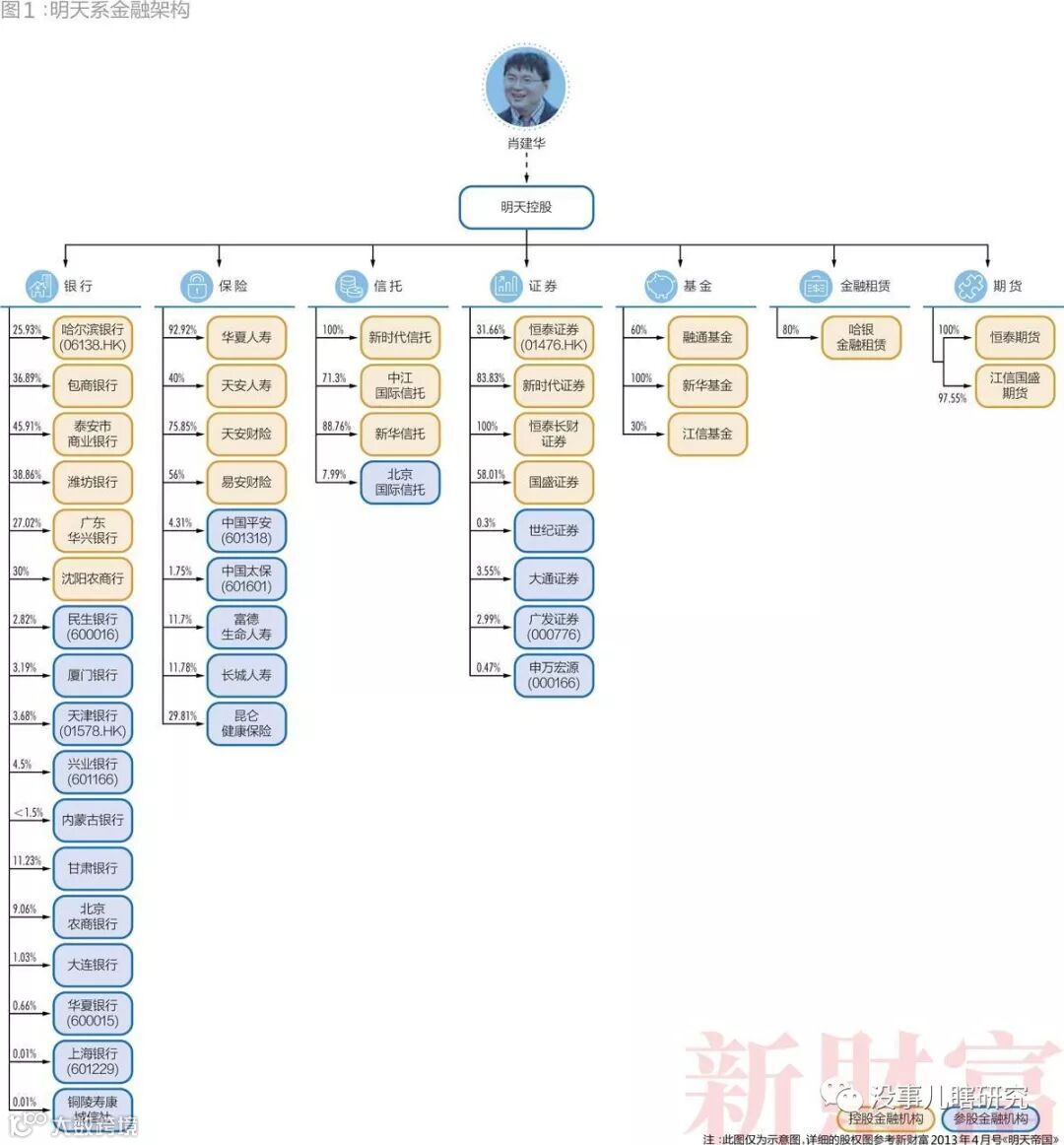 这次的包商银行,据新财富报道是肖jian华“明天系”在银行领域的一枚重要棋子。1998-2001年,明天系抓住了第一波城商行改制潮的机会。1995年,国务院决定撤并全国数千家城市信用社,吸收地方财政、企业入股,组建城商行。上世纪末、本世纪初,各地城市信用社掀起第一波改制设立城商行的热潮。明天系是最早参与这一大潮的民企之一,其控股包商银行,正是在这一时期完成的。包商银行地处明天系控制人肖jian华的妻子周虹文的老家内蒙古包头。有媒体去年10月报道,在“一参一控”的监管模式,“明天系”内除了哈尔滨银行外的银行股权都将出清。