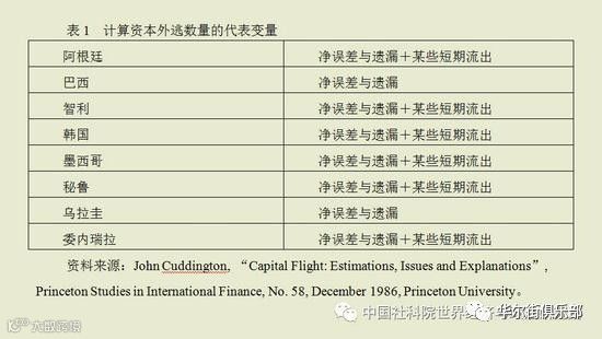 但是,尽管并不很准确,由于相对其他办法,用误差与遗漏账户的规模衡量资本外逃在概念上涵盖面更广泛、数据更容易获得,误差与遗漏就成了国际上经济学家使用最多的衡量资本外逃的代表变量。例如,柯廷顿在估计1980年代拉丁美洲国家和韩国资本外逃数量时所用的代表变量见表1。