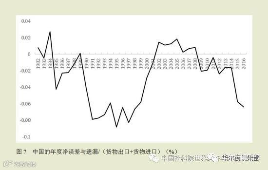 确实,在不存在资本管制和种种制度扭曲、实行浮动汇率制度的国家,除非洗钱和避税,在国际收支平衡表的各个账户中,高报、低报、瞒报等现象应该是比较少的。因而,造成巨额误差与遗漏的主要原因应该是统计上的。这些统计上的原因包括:覆盖范围不当、误报、漏报、同一笔交易的贷方分录和借方分录的数据来源不同(如贸易数据来自海关但创汇数据来自银行)、信息采集时间不同,等等。既然“误差与遗漏”是统计上的技术性原因造成的,误差与遗漏的相对数额不应该过大。根据国际惯例,“误差与遗漏”额的绝对值占货物进出口额的比重不应该超过5%。[16]更重要的是,由统计造成的“误差与遗漏”是白噪音,不应该显示明显趋势,不应该表现为长期、单向的资本流入或流出,更不应该同汇率有明显的相关。正如有学者指出的,美国误差与遗漏对贸易总额的季度比例在某些季度高于中国。但由于误差与遗漏的方向经常是前后相反的,平均下来美国误差与遗漏对贸易总额的年度比值,除2009年为5.8%外,都相当低。[17]然而,中国的情况不同。例如,从2014年第二季度到2016年末,中国各季度的误差与遗漏的方向完全一致,都是资本流出,而且同汇率变化相关。因此,很难把中国的巨额误差与遗漏主要归结于纯统计的技术性原因。